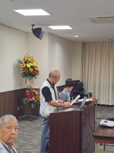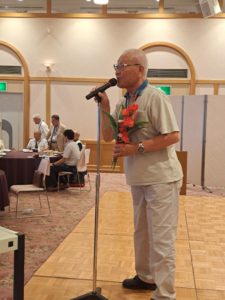 昼からの懇親会は小川社長の挨拶からは始まり、それから今年は5名の方が傘寿を迎えられるという事で、参加されていた4名の方にお祝いの品を贈呈されました。